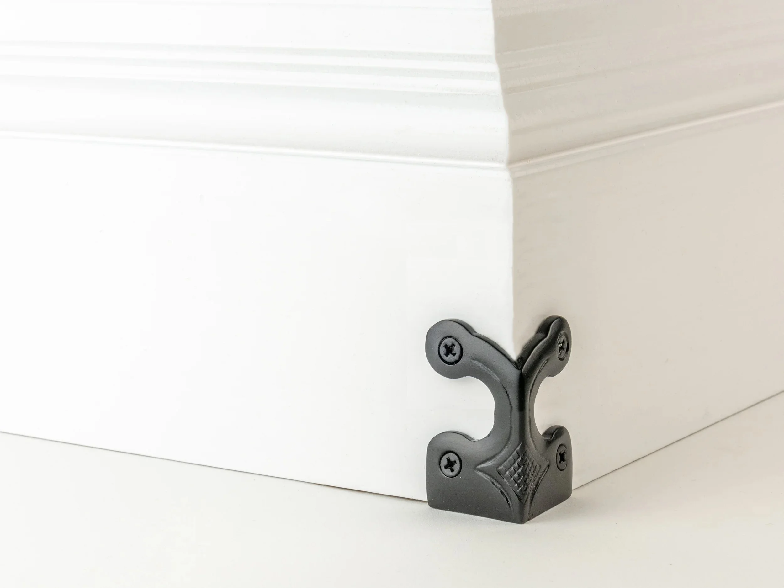 Our Skiffer corner protectors are beautiful solid brass castings designed to prevent damage to skirting boards and wall corners. It is all too easy to scuff corners, for example when vacuum cleaning or moving furniture. Our corner protectors not only prevent this, but also add an attractive detail to a normally bland area.